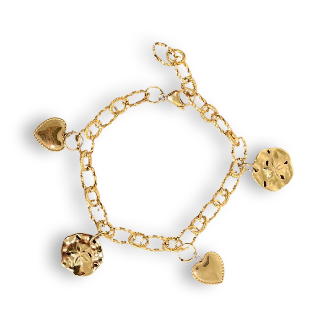 Bracelet à breloques coeur et soleil en acier inoxydable, fait main.
