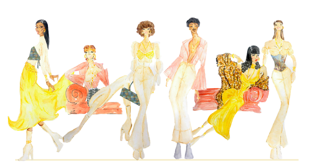 La gamme de couleur détermine les tons de la collection, Chanel a choisit le nude et chair pour le rappel au corps, la confusion du vêtement avec la peau, des nuances de noir, blanc et bleu pour les impressions, puis les couleurs, or, rose et crème. Il s’en suit l’élaboration et le sourcing des matières pour une cohérence au sein de la collection. Le denim est un rappel des années 70, le satin polyester et satin de soie pour le glamour hollywoodien, l’organza de soie pour l’appel à la nudité et la transparence. Ensuite il y a des transformations tissus avec des travaux par des plis, des fronces, des sur-piqûres, ce sont des tests indispensables afin de voir si c’est vraiment ce que l’on souhaite. La base pour la plupart des designers n’est pas forcément le dessin et le croquis, beaucoup travaillent en moulage directement à partir du tissu. Chanel, elle, dessine avec sa fibre artistique, un talent dont elle n’a pas idée, puis elle travaille avec le tissus choisit, le tombé des vêtements et la coupe de chaque produit en fonction des croquis, les proportions viennent ensuite.
